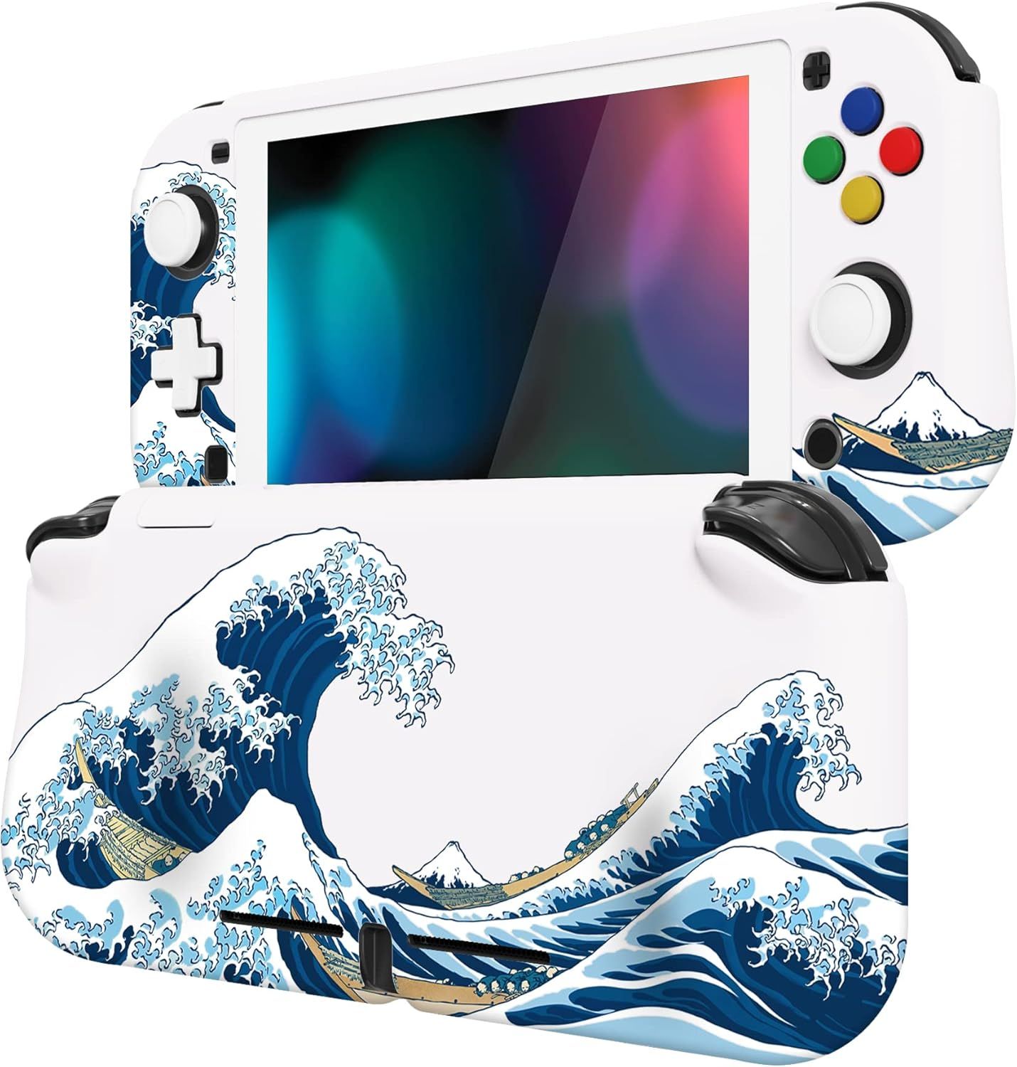 Case for Switch Lite Cover Joycon,Protective Accessory for Nintendo Switch Lite with Joystick Cap & Tempered Glass Screen Protector & ZealProtect Buttons-Kanagawa Big Wave