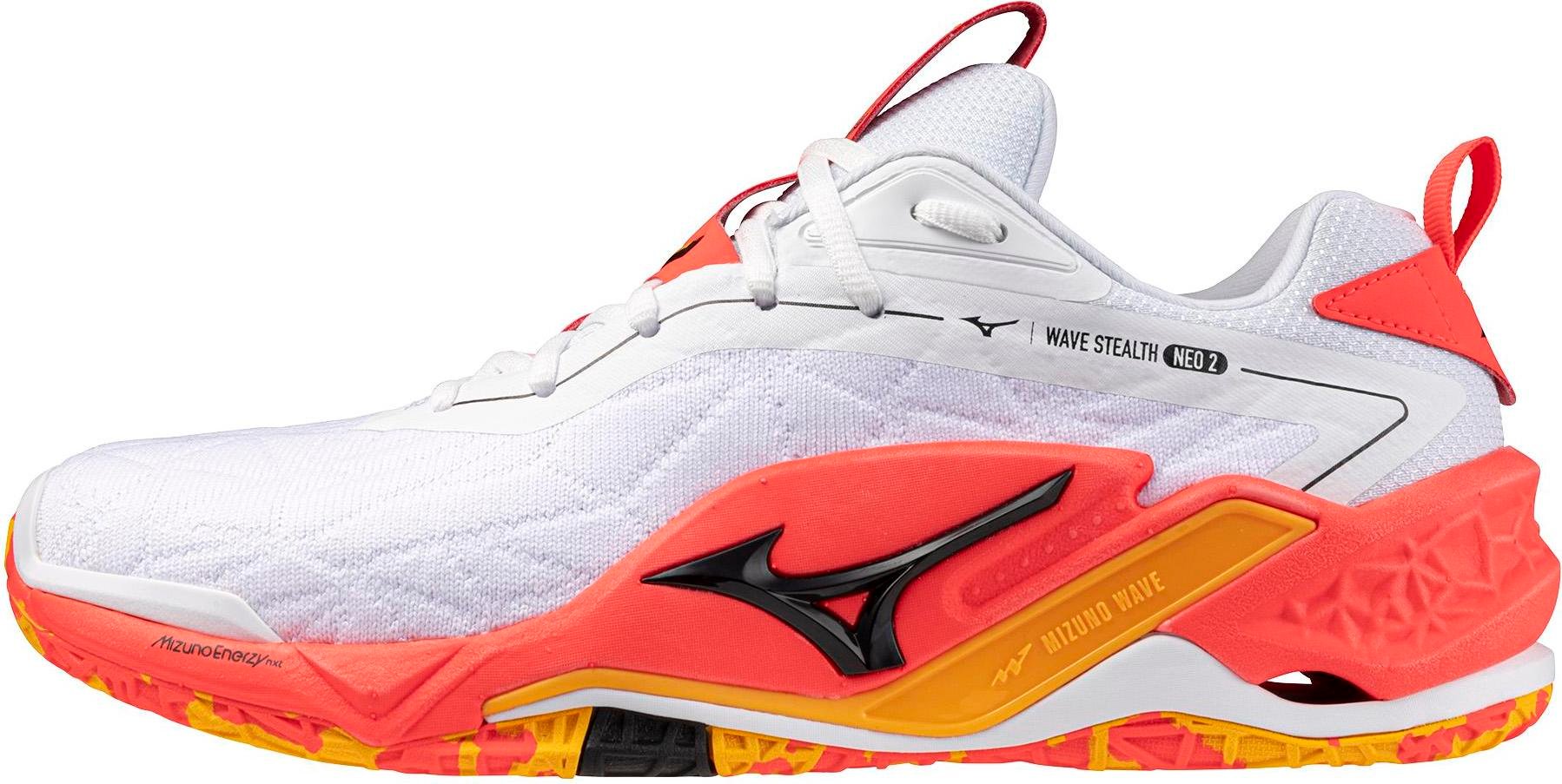 Mizuno Wave Stealth Neo 2 - white/fiery coral 2/citrus, Größe:14