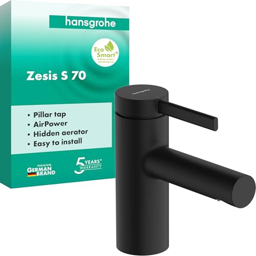 hansgrohe Zesis S 74713670 Robinet de lavabo pour eau froide sans évacuation pour WC d'invités avec hauteur de bec 74 mm Mitigeur économie d'eau (EcoSmart+) Noir mat