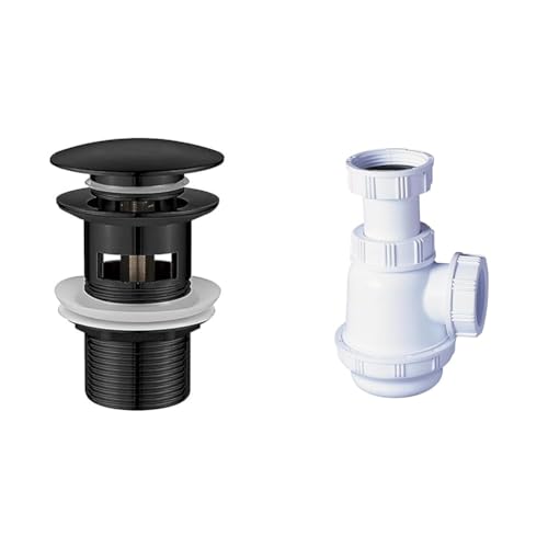 Ibergrif M20502B Bombe Vidage Salle de Bain, Bonde lavabo avec Trop Plein, Pop Up, Noir, M et Wirquin 30723130 Siphon de lavabo et Lave-Mains à culot Court, Blanc
