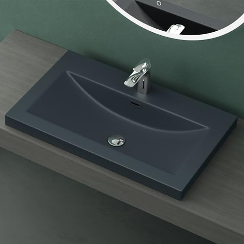 Mai & Mai Lavabo à Encastrer Gris Noir Mat 76,5cm Vasque Lave Mains Rectangulaire en Résine Lavabo avec Trop-Plein Col01 76,5x48x13cm