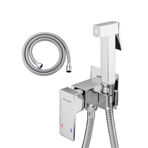 Ibergrif M22009 Mitigeur à encastrer WC & Bidet – Eau chaude/froide, Douchette murale avec support & Flexible inox 1,2 m, Chrome
