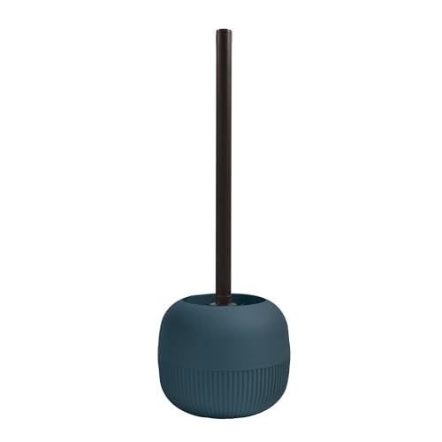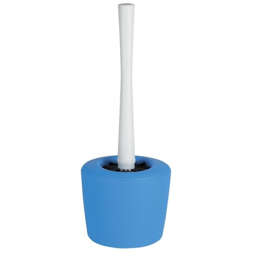 MSV - Brosse WC Gino Bleu - 9.1 x 9.1 x 37.4 cm - Design Moderne et Élégant - Manche Long et Ergonomique - Support Stable et Anti-éclaboussures - Accessoire Hygiénique et Pratique