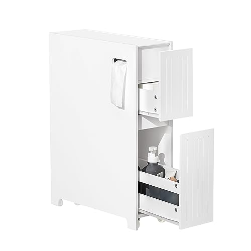 SoBuy Armoire WC Toilettes Compact, Meuble de Rangement Salle de Bain Étroit avec roulettes, Meuble WC 20 cm avec Tiroir en Bois,pour Rangement de Papier Toilette, 60x20x75cm, BZR111-W