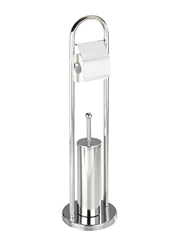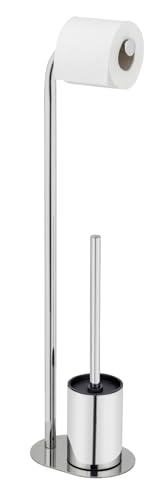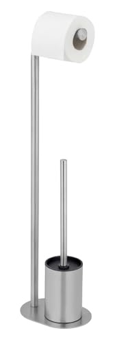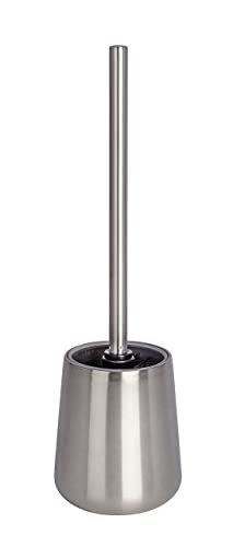 WENKO Porte brossee WC Vasto | Set WC inox avec brosse WC sur pied design et porte-brosse WC inox | Toilettes anti-odeurs en acier inoxydable | Ø 22 x 81 cm | Couleur argent brillant