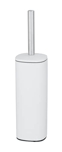 WENKO Porte brossee WC Mod. Alassio | Brosse WC design en métal blanc fermée pour salle de bain élégante | Accessoire pratique | DIM (l x h x p) 9,3 x 39,2 x 9,3 cm | Acier mat blanc