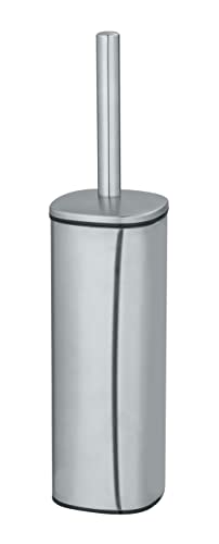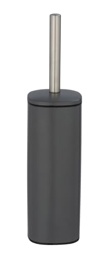 WENKO Brosse WC fermée Alassio, Porte Brosse WC au Design fermé avec Brosse WC Noire et tête de Brosse WC remplaçable de Ø 8,5 cm, Acier, 9,3x39,2x9,3 cm, Gris Mat