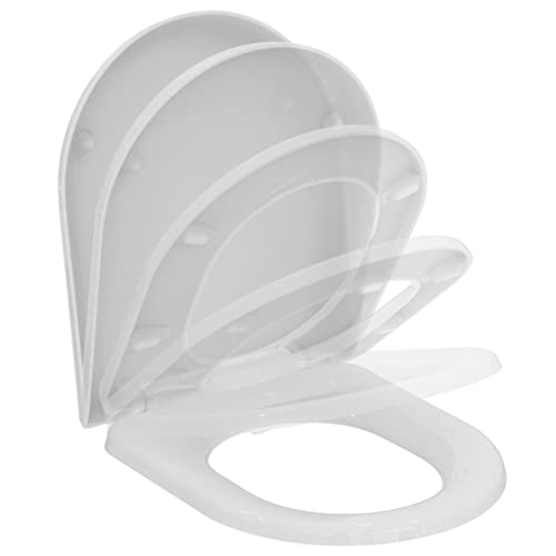 Ideal Standard – Tempo Abattant WC, Design enveloppant, Forme en D, Fermeture douce et option de libération rapide pour faciliter le nettoyage, en Duroplast, Blanc Brillant