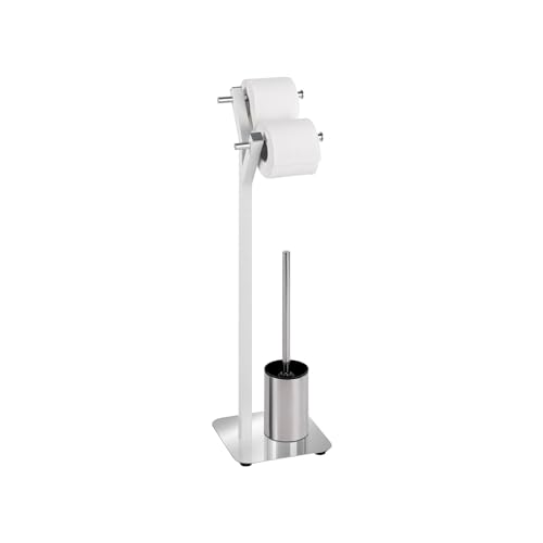 Avilia Lampadaire à Arbre Porte-Rouleau et Porte-Brosse en Acier Inoxydable, utile pour Papier Toilette et Brosse WC Design Pratique et Stable, Blanc, 20 x 73,5 x 20 cm