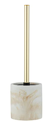 WENKO WC-Porte brosse Mod. Odos | Accessoires WC design en polyresine avec brosse WC blanche et or | Porte-brosse WC élégant en marbre | Dimensions Ø 7,5 x 37 cm | Noir et blanc