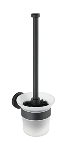WENKO WC-Porte brossee murale Bosio Black | Brosse WC design en inox noir avec support en verre satiné | Accessoires salle de bain noirs modernes | Dimensions 10 x 35 x 14 cm | Inox matt