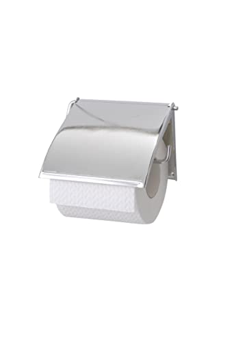 WENKO Dérouleur papier WC Cover - design fermé, Acier, 13.5 x 12 x 2.5 cm, Chromé