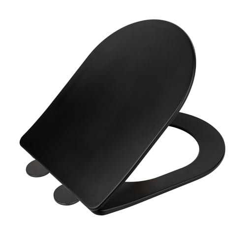 WENKO Abattant WC Galati noir mat | Abattant WC design avec descente amortie Soft-Close en Duroplast | Ultraflat et hygiénique | DIM (L x l) 36 x 46 cm | Couleur noire élégante et moderne