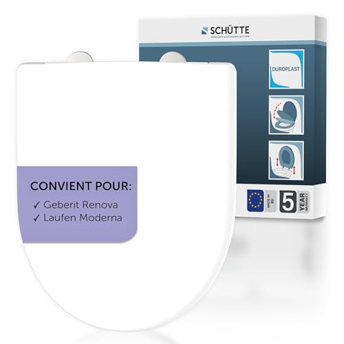 SCHÜTTE Abattant WC compatible avec Geberit Renova, Laufen Moderna, avec système d'abaissement automatique, fabriqué en UE, couvercle de toilette amovible en Duroplast incassable, couvercle de