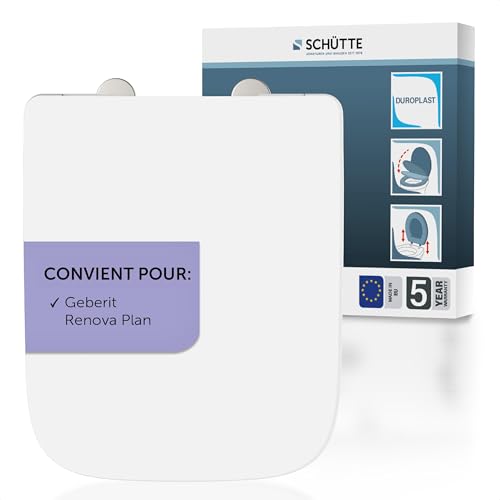 SCHÜTTE Abattant WC compatible avec Geberit Renova Plan, avec système d'abaissement automatique, fabriqué en UE, couvercle de toilette amovible en Duroplast incassable, couvercle de toilette et