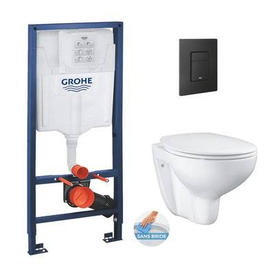 Grohe Pack WC Rapid SL + Bau Ceramic sans bride Siège abattant SoftClose Plaque de commande noir mat (RapidSL-Bau-KF0)