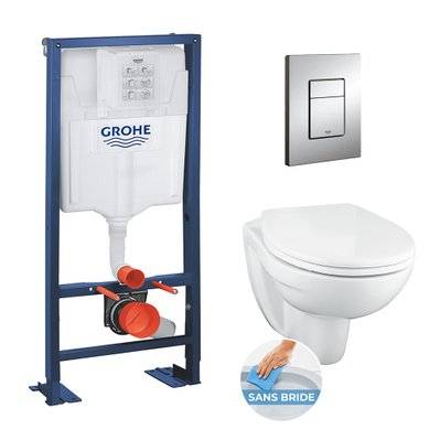 Grohe Pack WC Bâti-support Rapid SL + Bau Ceramic sans bride Abattant softclose Plaque chrome (39418000)