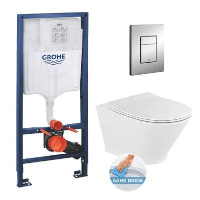 Grohe Pack WC Rapid SL + cuvette sans bride Roca The Gap Round abattant softclose plaque Skate Cosmopolitan chrome
