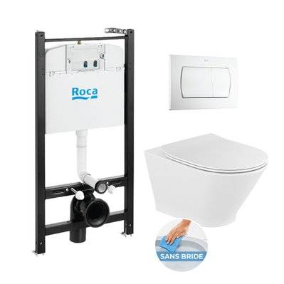 Roca Pack Bâti-support ROCA ACTIVE + WC GAP ROUND sans bride Abattant softclose Plaque de commande blanche