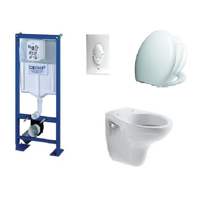 PACK COMPLET WC SUSPENDU BATI GROHE SL AUTOPORTANT + PLAQUE BLANCHE + CUVETTE JACOB DELAFON BRIVE + ABATTANT SIAMP VALLAURIS FREIN