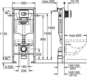 GROHE Set pour WC suspendu bâti-support 1,13 M, supports muraux avec plaque & Plaque de commande double boutons WC pour toilette suspendu, double boutons WC interrompables, pour soupage