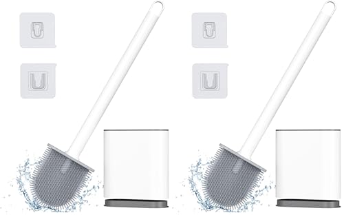 Alyvisun Brosse WC Silicone, Brosse Toilettes WC Suspendu en Silicone, Ensemble de Balayette WC à Séchage Rapide avec Long Manche, Balai WC Montage Mural/au Sol, Blanc (Lot de 2)