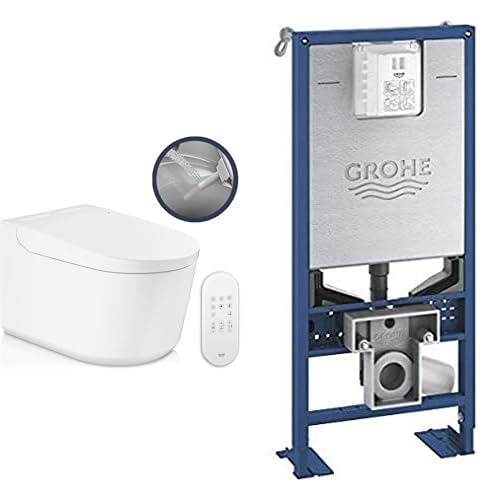 GROHE Sensia WC Lavant Suspendu, 2 bras de douchette réglables hygiène intime (1 jet arrière, 1 jet douchette féminine), Télécommande, Cuvette sans bride, Blanc Alpin, 36507SH0