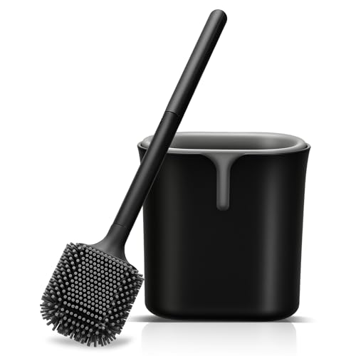 VINATO Brosse WC Silicone avec Support, Brosse Toilettes Silicone,Brosse WC Suspendu Noire pour Salle de Bain
