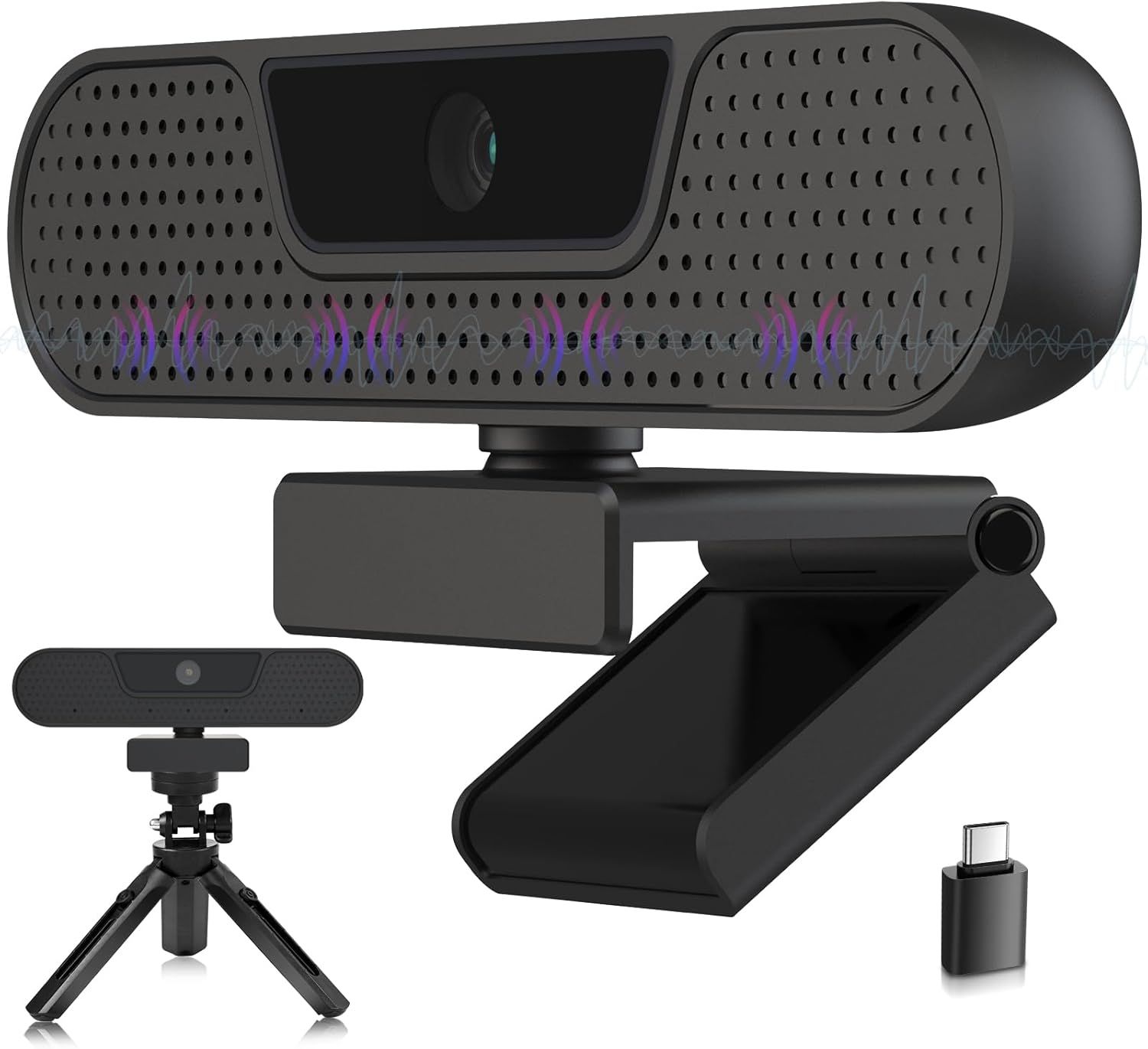 W4Gs 2K Webcam, 1080P 60Fps Webcam With Microphones, Autofocus, Noise Reduction, Light Correction, Plug&Play, Privacy Cover, Tripod, For Livestream, Conference, Video Chat