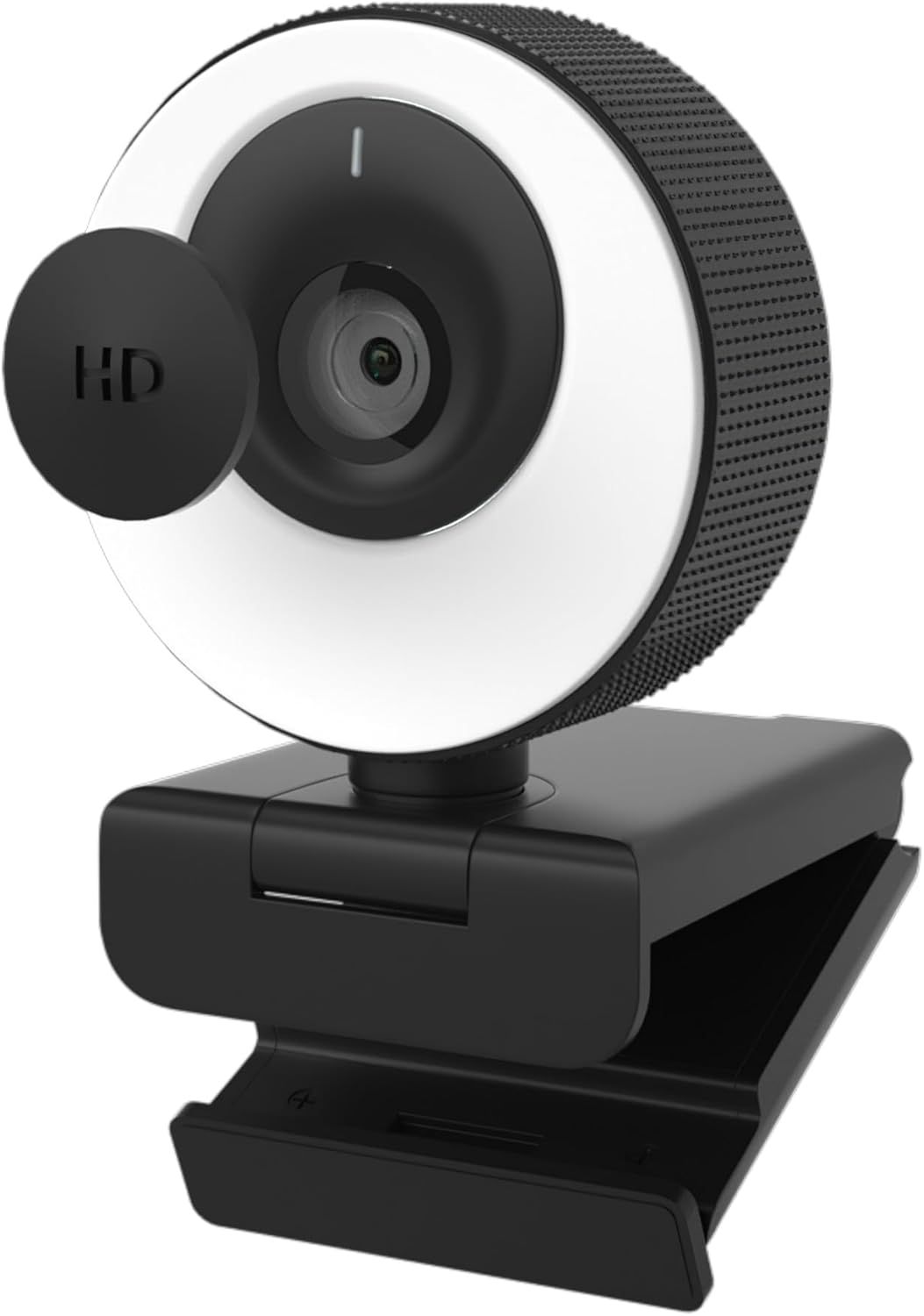 Webcam 1080P 60FPS avec Microphone, Anneau Lumineux, Autofocus, 3 Modes D’éclairage à Aradation Continue – pour Vidéoconférences sur PC, Mac, Odinateur Portable et Tablette