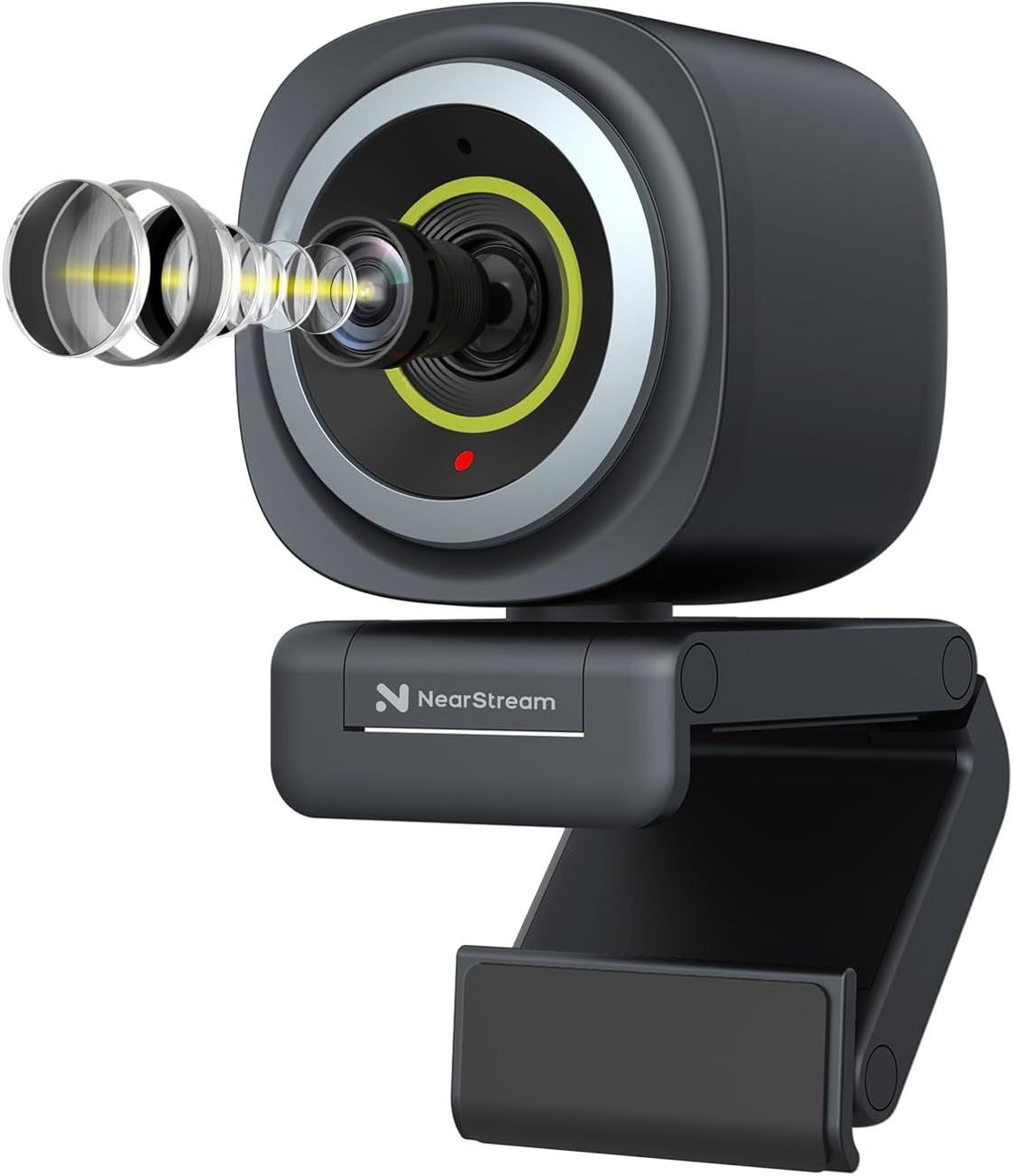 NearStream Webcam PC 4K Full HD avec Microphone Intégré avec Réduction de Bruit, Camera pc 4K 30fps /1080P 60fps, Webcam Streaming avec Champ de Vision Réglable & Cadrage Automatique & Autofocus