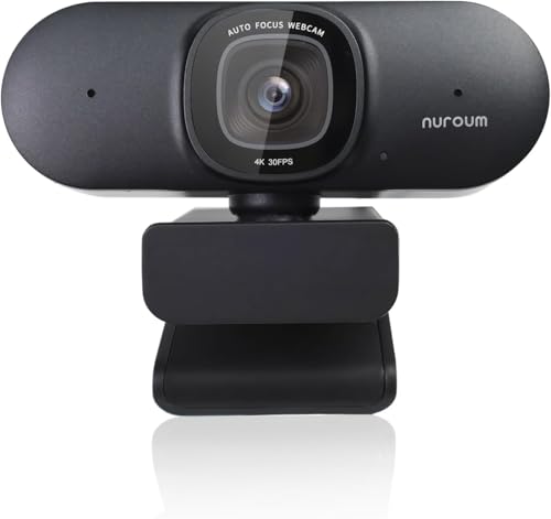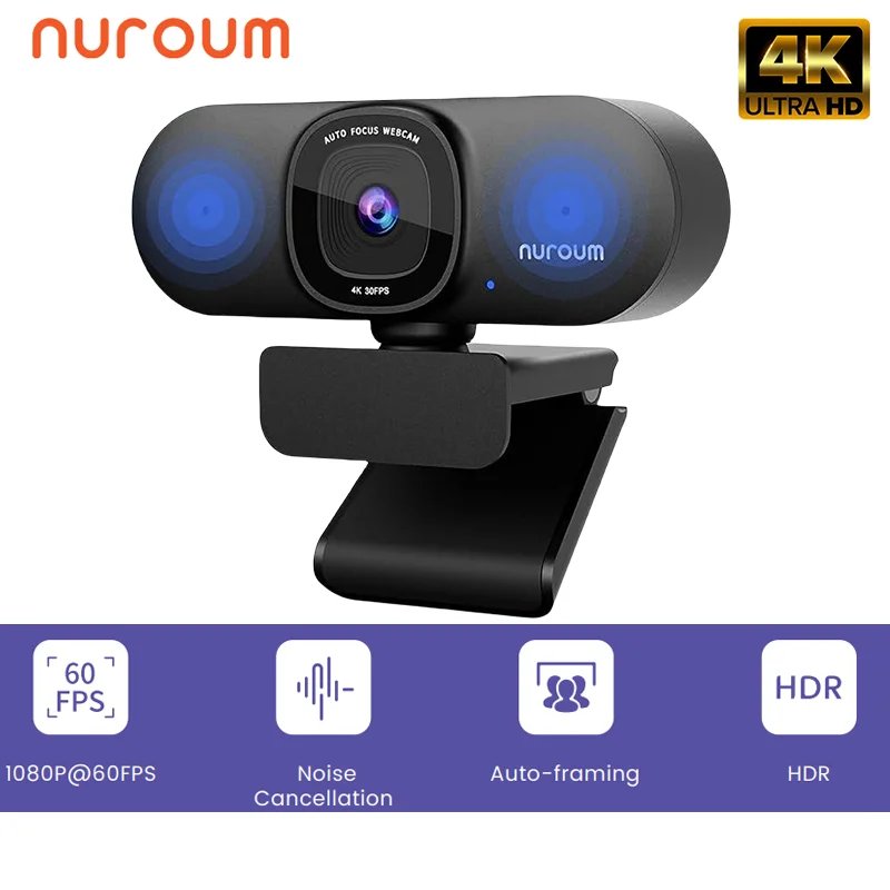 Webcam Nuroum V32-AF 4K avec double microphone à annulation du bruit 1080p 60fps 90° correction FOV et lumière USB Plug&Play pour PC appels vidéo Conférences/ordinateur portable Skype