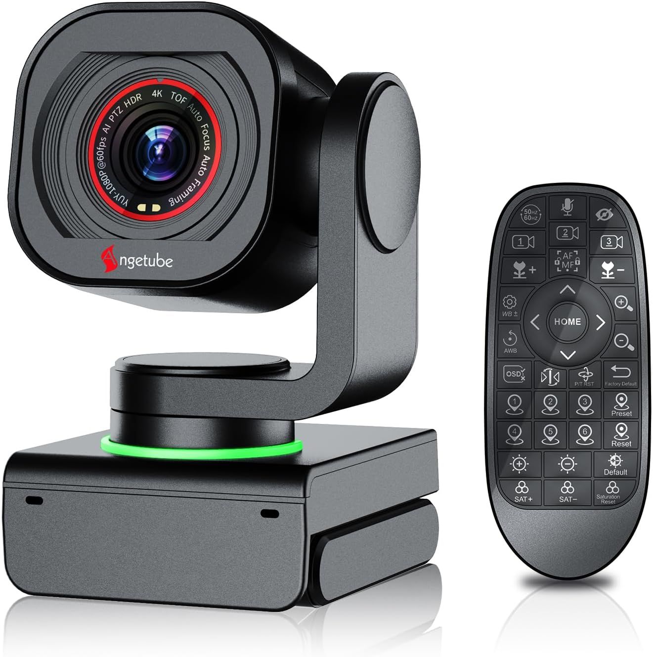 Angetube Webcam 4K avec contrôle par Geste et Suivi AI – caméra Streaming USB 3.0 avec Double Microphones et réduction du Bruit, autofocus TOF, 1080P 60FPS, HDR, pour PC, Ordinateur Portable et Mac.