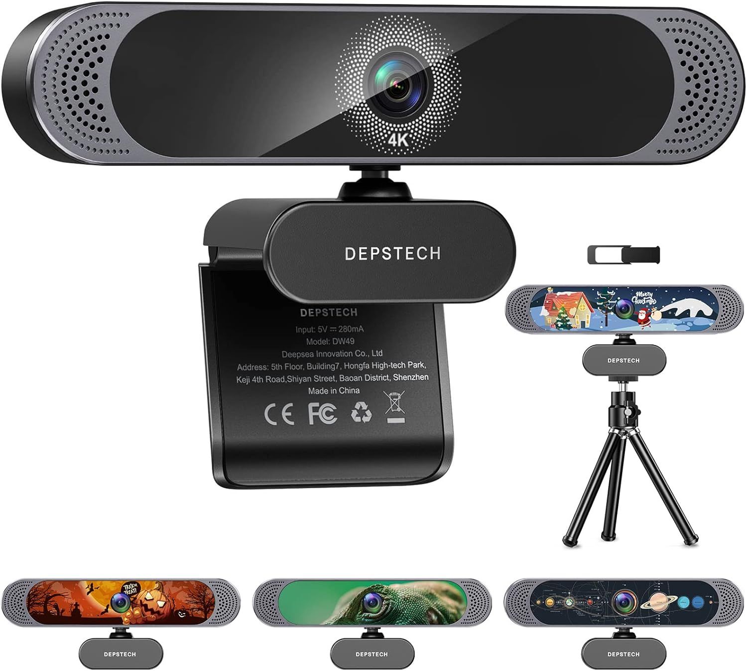 DEPSTECH DW40 Webcam 4K, Autofocus Caméra Web HD avec 1/3'' Sensor, Microphones Doubles, Privacy Shutter et Trépied, Plug and Play USB 8MP Camera Streaming Webcam pour PC Windows/Mac/Appel vidéo/Zoom
