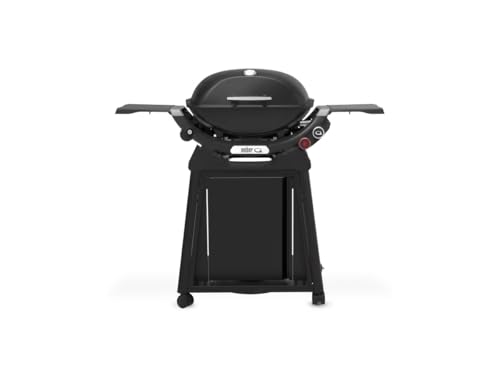 Weber Q 2200N Barbecue à gaz avec étagères latérales et support compact/idéal pour terrasses et balcons, brûleur haute performance, allumage électronique, noir nuit