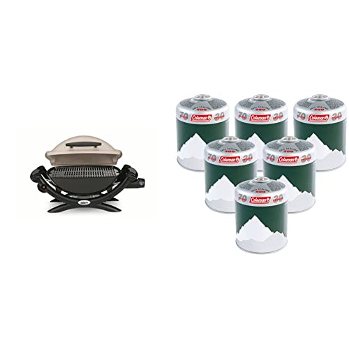 Weber Q1000 Barbecue Gaz, 43 x 32 cm, Titanium (50060053) & Coleman C500 Pack de 6 Cartouches de gaz, 6 x Cartouches à Valve vissables, Cartouches de gaz pour réchauds, barbecues ou Lampes, Gris, 440g