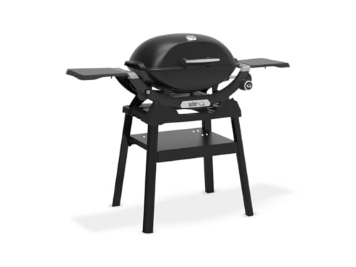 Weber Q 2200N Barbecue à gaz avec tablettes latérales et Support Compact/Grill pour terrasses et balcons, avec brûleurs Haute Performance, grilles en Fonte émaillée, Noir Minuit