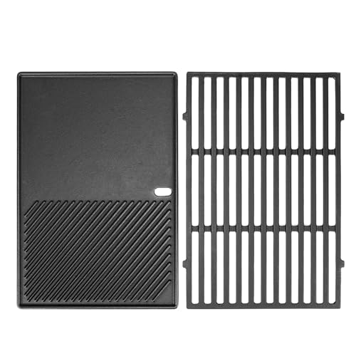 Denmay 7638 Grille de cuisson et plaque de cuisson 44,5 cm pour Weber Spirit I & II 300 Series (avec boutons de brûleur avant), en fonte et plaque de cuisson de rechange pour Weber Spirit E310, E320