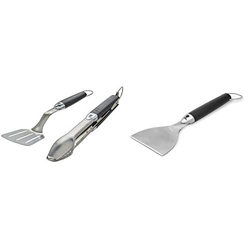Weber Kit d'ustensiles Premium, Format Compact Accessoires, Noir/Argent & Grattoir pour Plancha, Acier Inoxydable