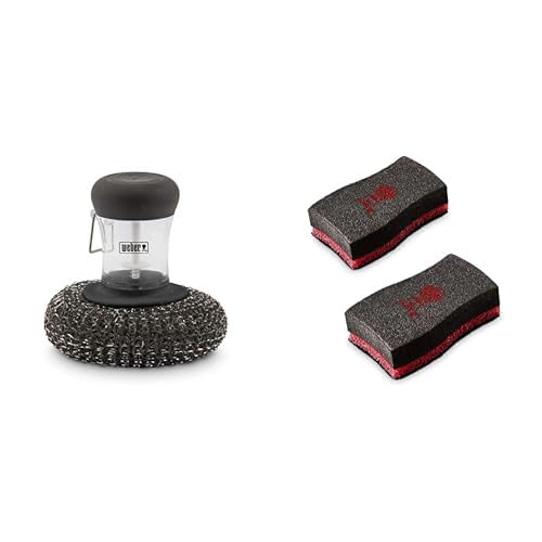 Weber Éponge Métallique pour Plancha - Éponge avec Distributeur de Savon Intégré & Éponges de Nettoyage - Éponges Résistantes de Lavage - Éponges à Récurer pour Barbecue