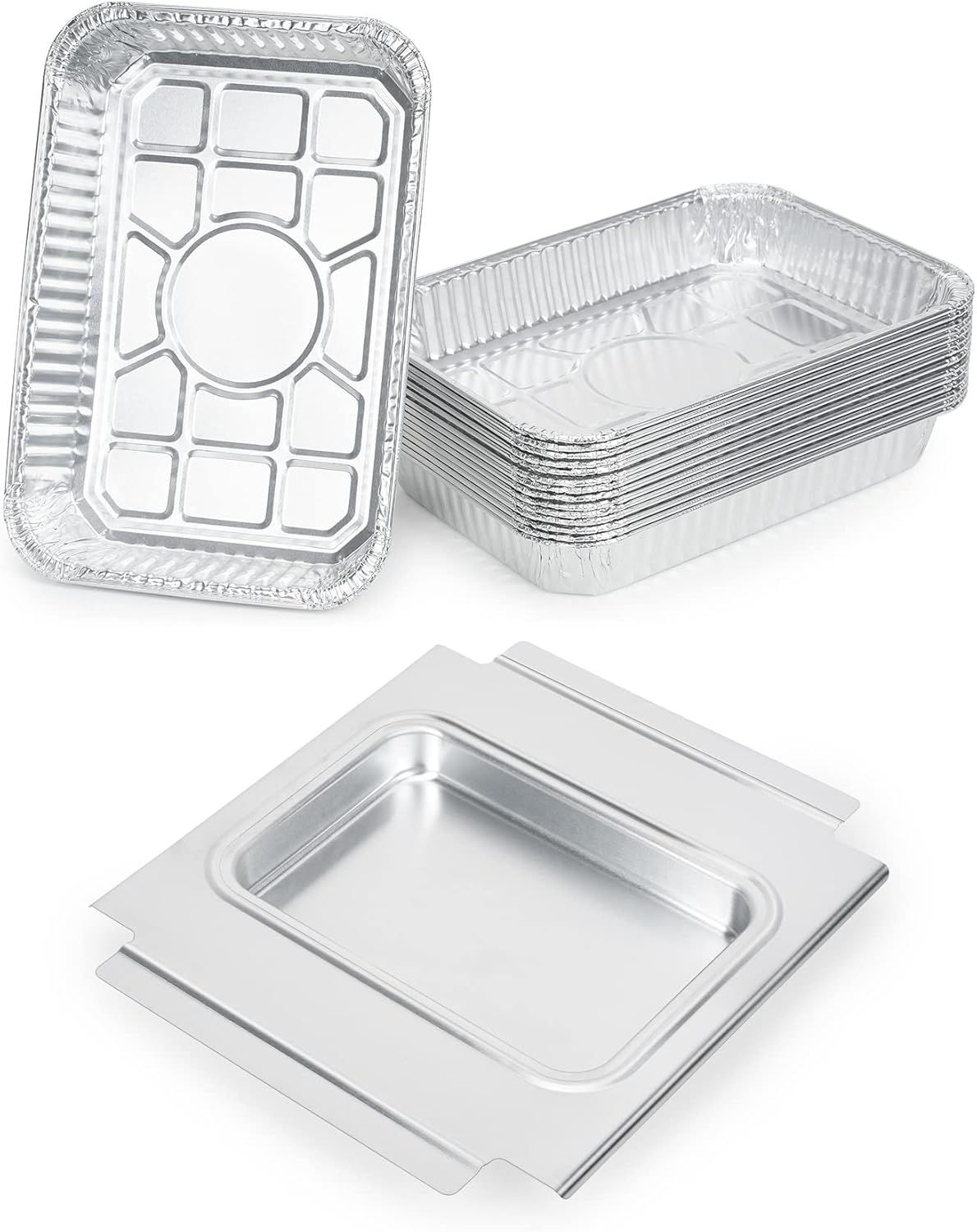 PATB-only fire Barquette Aluminium, avec 15pcs Barquette Alimentaire Jetable, 27 × 30 × 3,2 cm, Plateau Jetable pour Barbecues à Gaz Weber Q200 Q300 Q220 Q240 Q2000 Q3000 Q320 Q3200 Série