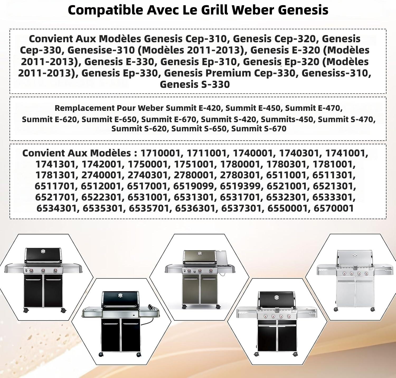 Nupick 7106 pour barbecue à gaz Weber Spirit 2 et 3 brûleurs, 132,1 cm pour Spirit 210/310, Spirit II E210/E310, convient pour les barbecues à gaz Spirit 200 et 300