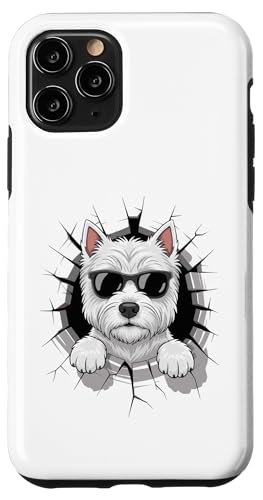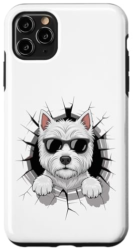Cracked Wall West Highland White Terrier Sunglasses Westie Coque pour iPhone 11 Pro