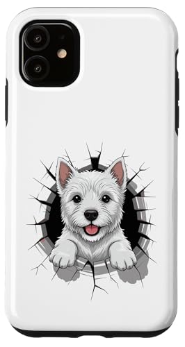 Cracked Wall West Highland White Terrier Westie Coque pour iPhone 11