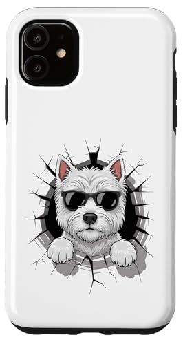 Cracked Wall West Highland White Terrier Sunglasses Westie Coque pour iPhone 11