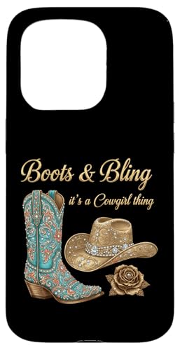 Boots and Bling It's a Cowgirl Thing Western Femme Cowgirl Coque pour iPhone 15 Pro