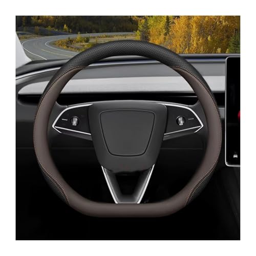 Steering Wheel Protector Car Steering Wheel Cover for Tesla for Model 3 Y for Zunifer for Juniper 2025 2026 Car Interior Accessory(Black Brown 36cm)
