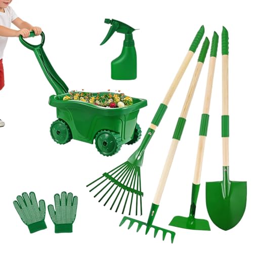 Garden Game Playset With Rake Shovel Hoe Leaf Rake Wheelbarrow Gloves And Spray Bottle | Kids Wheelbarrow Toys | For Children Boys Girls Backyard Beach Easter Birthday