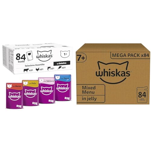 Whiskas Nourriture Humide pour Chats Adulte 1+, sélection Mixte en gelée & Nourriture Humide pour Chats Senior 7+, sélection Mixte en gelée