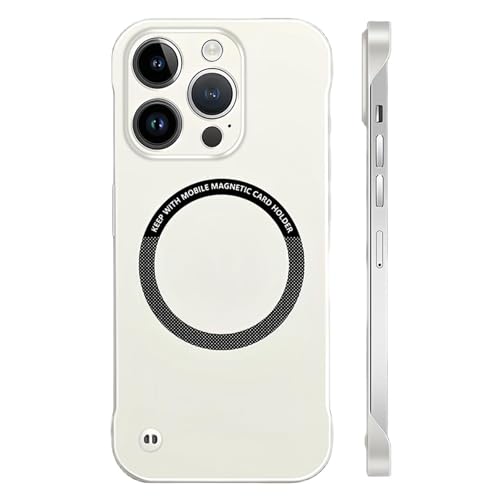Générique Ultra Thin Hard PC Magnetic Frameless Phone Case for iPhone 16 15 14 Pro Max, 0.3mm Ultra Thin Lightweight Case, Matte Color Solid Cover (14 Pro Max,White)